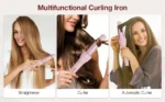 2-in-1 automatic hair curler and straightener with ceramic heating and negative ion technology for smooth straight hair or beautiful curls.