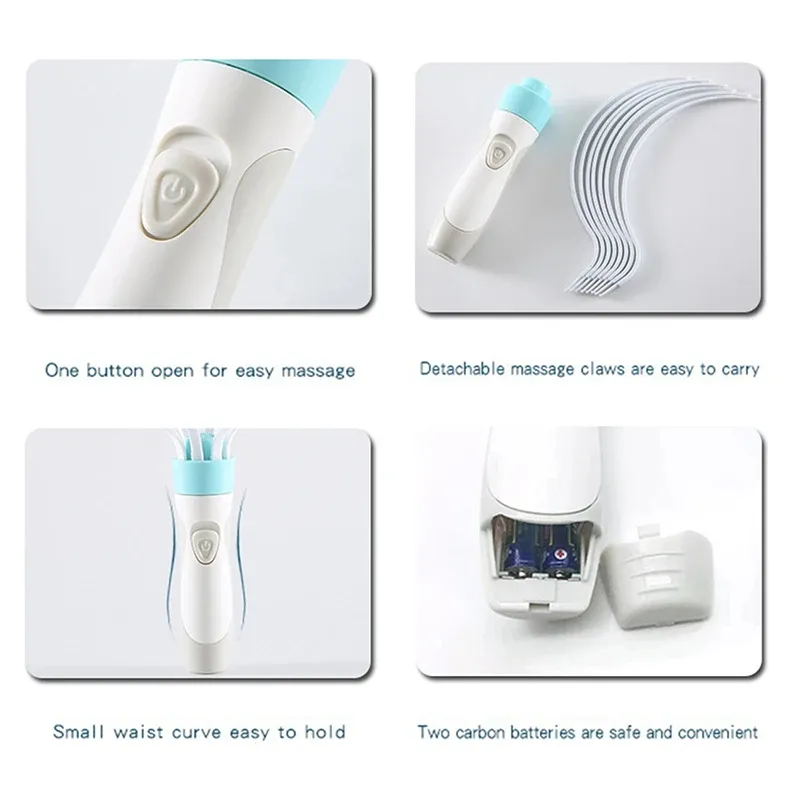 Relax your mind and relieve stress with this Electric Eight Claw Scalp Head Massager. Designed to provide gentle vibration massage, this handheld device stimulates the scalp and helps improve blood circulation while delivering a soothing and calming experience.