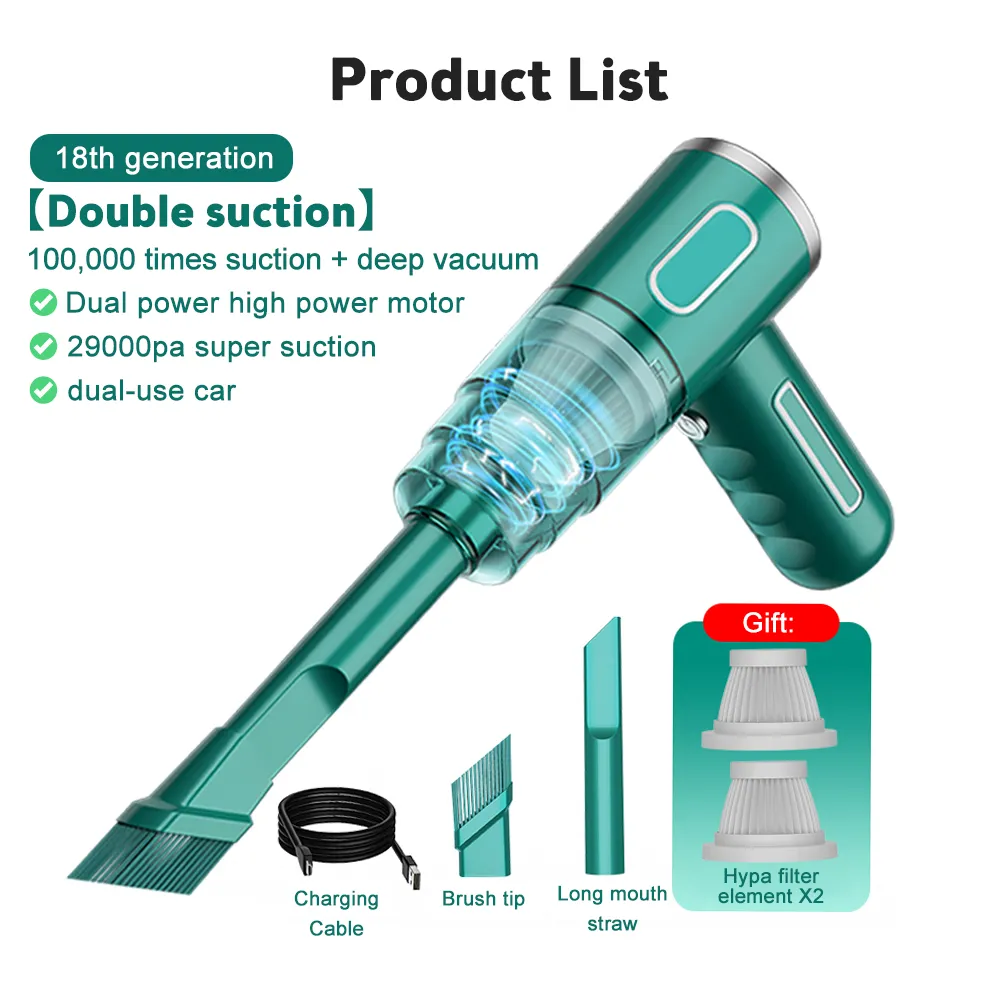 Keep your home and car clean with this Handheld Portable Vacuum Cleaner. Designed for convenience and efficiency, this compact vacuum cleaner easily removes dust, crumbs, pet hair, and small debris from different surfaces.