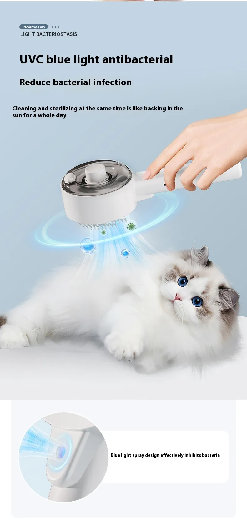The brush features a self-cleaning design, allowing you to easily remove collected hair with one button. The steam grooming function helps reduce static, smooth the fur, and improve the overall grooming experience for your pet.