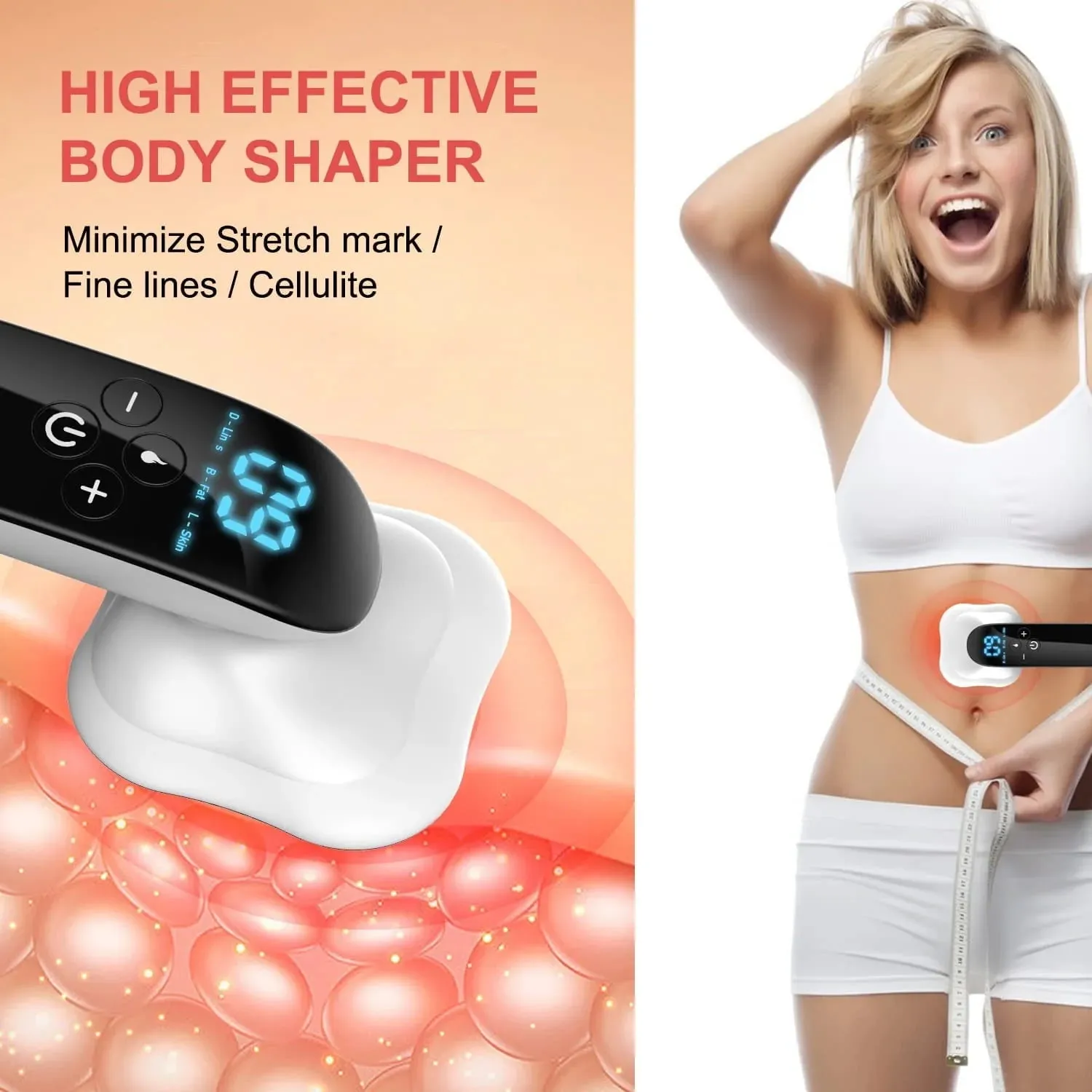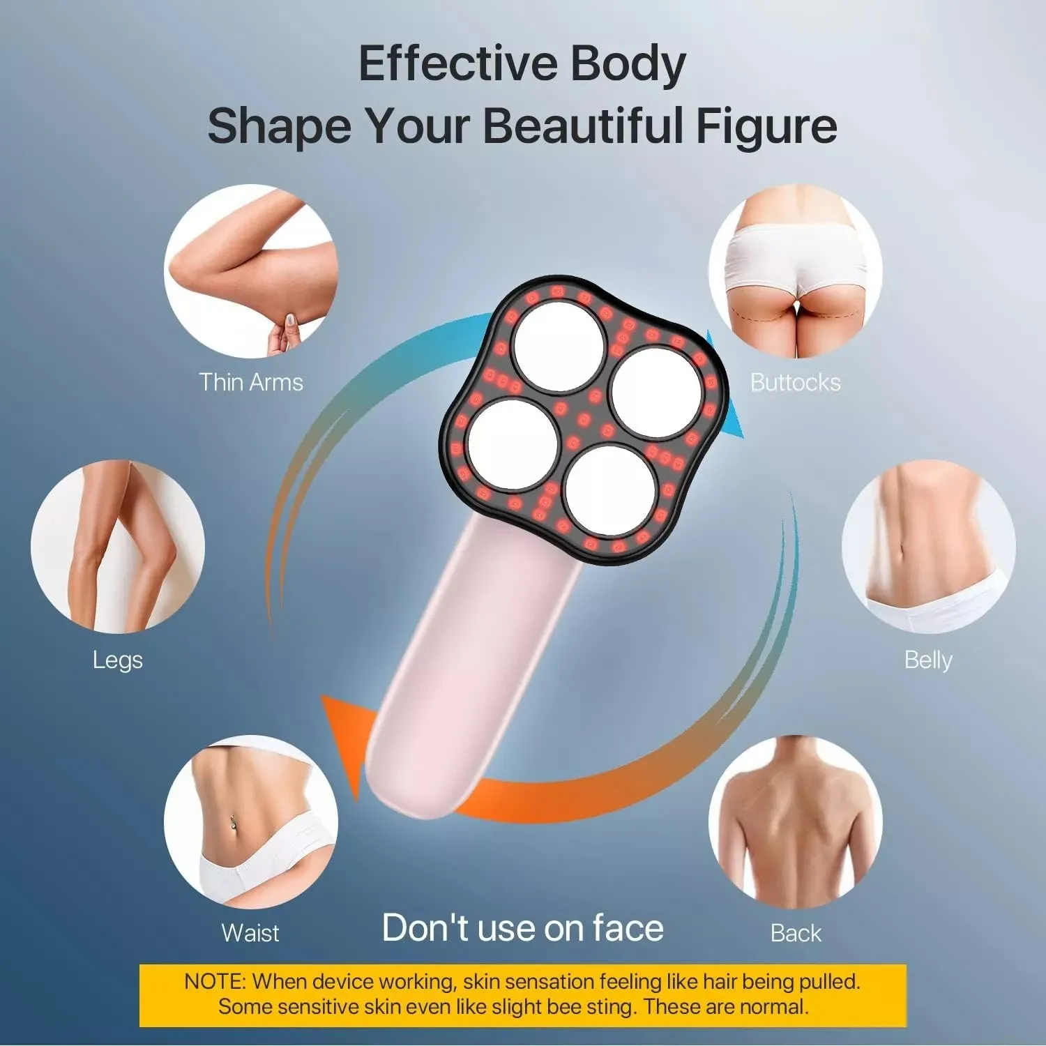 The device is commonly used for waist, abdomen, arms, thighs, and legs, helping to relax muscles after workouts and daily activities. The gentle vibration and massage function can help improve skin appearance and provide a comfortable body massage experience.