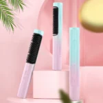 Portable rechargeable hair straightening comb with dual straightener and curler function. USB charging and cordless design perfect for travel and quick hair styling.